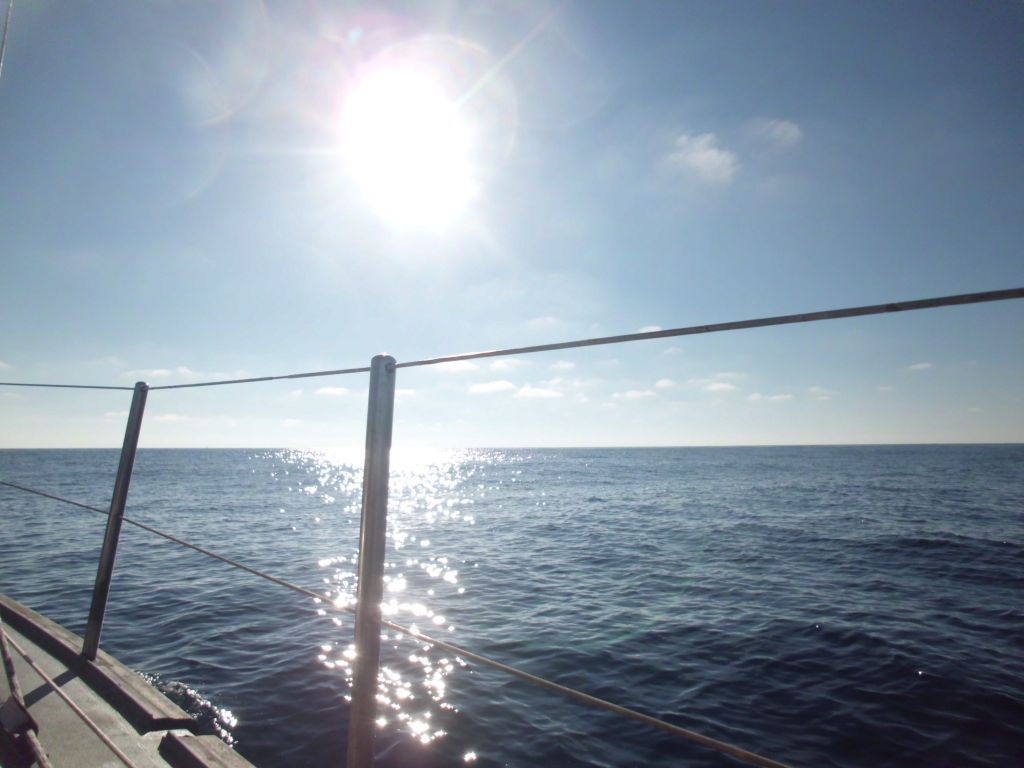 Die Ausfahrt aus L’Aber-Wrac’h verläuft unproblematisch, keine 100 Meter nach der Hafenausfahrt setzen wir die Genua und segeln mit 4,5 Knoten die Flussmündung hinaus. Draußen nimmt der Wind ab, wir werden langsamer, aber mit unseren Dieselvorräten konnen wir maximal ein Drittel der Strecke motoren, deshalb bleibt der Motor aus. In der ersten Nacht zieht dichter Nebel auf, unsere Positionslichter im Masttopp können wir vom Cockpit aus nur mehr erahnen. Andere Schiffe sehen wir nicht, aber am Funk geht es wild zu, der Mann von Ushant Traffic hat einen harten Arbeitstag und morgen sicher keine Stimme mehr. Aber mit Hilfe des GPS halten wir uns außerhalb der Schifffahrtsrouten und segeln mit 1,5 Knoten und leichtem Gegenstrom um die Ile d’Ouessant herum. Sehen können wir sie allerdings nicht, und so werden die Felsen vor L’Aber-Wrac’h das letzte Land für die nächsten fünf Tagen bleiben.