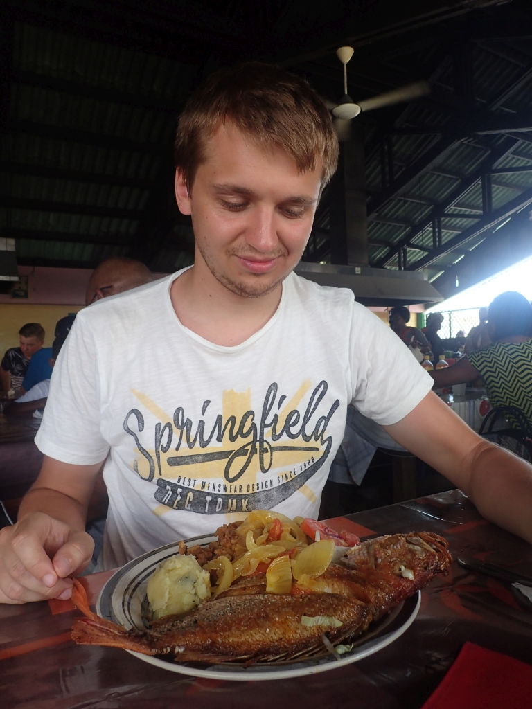 Das vielleicht nicht allerbeste Pferd in Luuk’s Stall bringt uns mehrmals sicher in den Norden der Insel, wo wir an wunderschönen Stränden baden, von Felsen direkt ins türkise Wasser springen, reichlich Batidos – frische, leicht gefrorene Fruchtsäfte – trinken oder einen Markt besuchen. Außerdem besuchen wir eine Aloe Vera-Plantage, eine Straußenfarm und nutzen das Auto, um Einzukaufen und Wäsche zu waschen. Viel zu schnell ist die Woche vorbei und wir müssen das Auto zurückgeben. Jaqueline hat keine Schmerzen mehr und legt die Armschlinge bald ab, muss allerdings weiterhin vorsichtig mit ihren Armbewegungen sein und lässt deshalb sicherheitshalber die ausgemachte Windsurf-Stunde aus. Ma, Vicky und ich jedoch stehen zum ersten Mal auf Surfbrettern und machen gar keine so schlechte Figur. Die restliche Zeit vergeht schnell mit Boccia am Strand, reichlich Drinks auf anderen Booten, grillen am Tugboat Beach, einem nervenaufreibenden Beachtennismatch zwischen Ma und mir (mit dem besseren Ende für ihn, allerdings erst im fünften und entscheidenden Satz), Red Snapper und Kaktussuppe (nicht so unser Ding) in der alten Markthalle und vielen Happy Hours in diversen Strandbars.