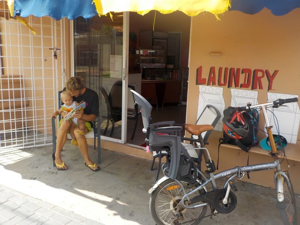 Auch die SAILOR MOON kommt nicht zu kurz: Wir entwerfen einen genialen neuen Mechanismus für die Klappe der Achterkabine, bauen ein Gewürzregal (simpel aber funktional, SAILOR MOON-Stil eben) und waschen endlich wiedermal die Cockpitpölster. Außerdem stocken wir unsere Proviantvorräte auf, dank Judiths Mitgliedskarte können wir beim PriceSmart günstig und in großen Mengen einkaufen. Eine riesen Kiste Windeln für Willi, dazu ein Jahresvorrat an Feuchttüchern, Olivenöl, Müsli…unsere Klappräder (und auch wir) haben ordentlich zu schleppen. Nebenbei schreiben wir fleißig Emails mit befreundeten Booten, um endlich Klarheit über die undurchsichtigen Einklarierungsgebühren in Kolumbien zu erhalten. Zwei, drei Wochen planen wir noch hierzubleiben, dann soll es weitergehen, ob in die Marina von Santa Marta oder zum Ankerplatz vor Cartagena wissen wir aber immer noch nicht.