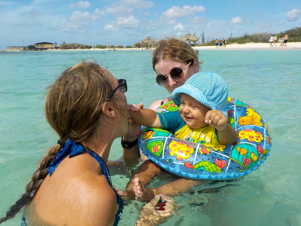 Auch sonst können wir unserem Gast einiges bieten: Nach anfänglichen Schwierigkeiten mit einem völlig nutzlosen Online-Reservierungssystem mieten wir wiedermal ein Auto und können so auch den Süden der Insel besuchen. Zweimal stoppen wir am sogenannten Baby-Beach, einer wunderschönen Lagune mit klarem, hüfttiefem Wasser, schönem Sand und einem schützenden Riff davor. Auch ein Mittagessen im berühmten Charlie’s in Sint Nicolaas, einer wilden Mischung aus Bar und Museum, lassen wir uns natürlich nicht entgehen. Außerdem erkunden Jaqueline und ihre Mutter ausgiebigst die zahlreichen Tommy-Hilfiger-Shops in der Innenstadt, während ich inzwischen unseren Dieseltank erfolgreich säubern und abdichten kann.