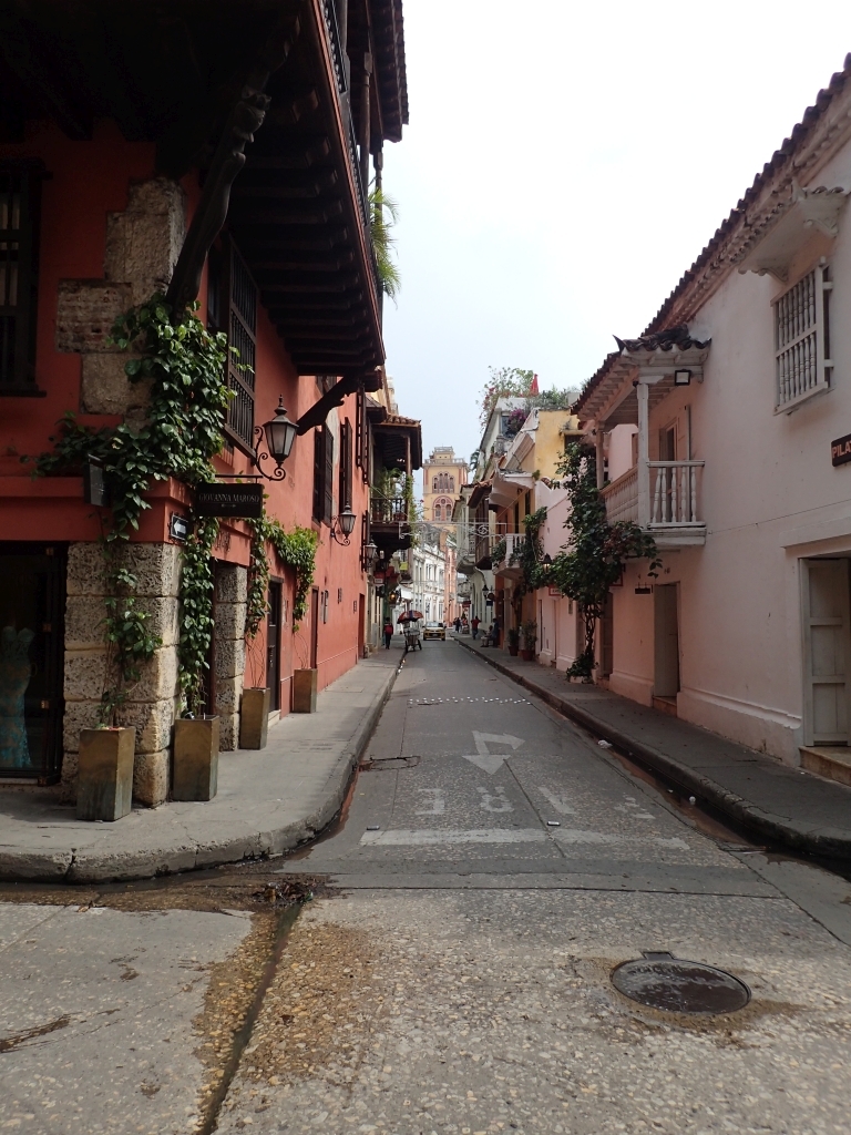 Unser Cartagena-Ausflug beginnt mit ein paar kleineren Schwierigkeiten: Durch irgendeinen Defekt am Bus dauert die Fahrt von Santa Marta nicht vier, sondern sechs Stunden, Wartezeit an einer Tankstelle neben der Straße inklusive. Außerdem wurde die Zimmerreservierung im Hostel storniert, es gab ein Problem mit der Kreditkarte. Nach einigem Diskutieren ist jedoch eine Lösung gefunden, mit der alle leben können, und wir fallen müde ins Bett. Matti hat eine lange, aber problemlose Anreise hinter sich, und eine überteuerte Taxifahrt später kann auch er sich in seinem Extra-Zimmer hinlegen. Die Klimaanlage und die im Vergleich zu Santa Marta entspannte Moskitosituation lassen uns wunderbar schlafen, und am nächsten Tag brechen wir ausgeruht zum ersten Stadtrundgang auf.