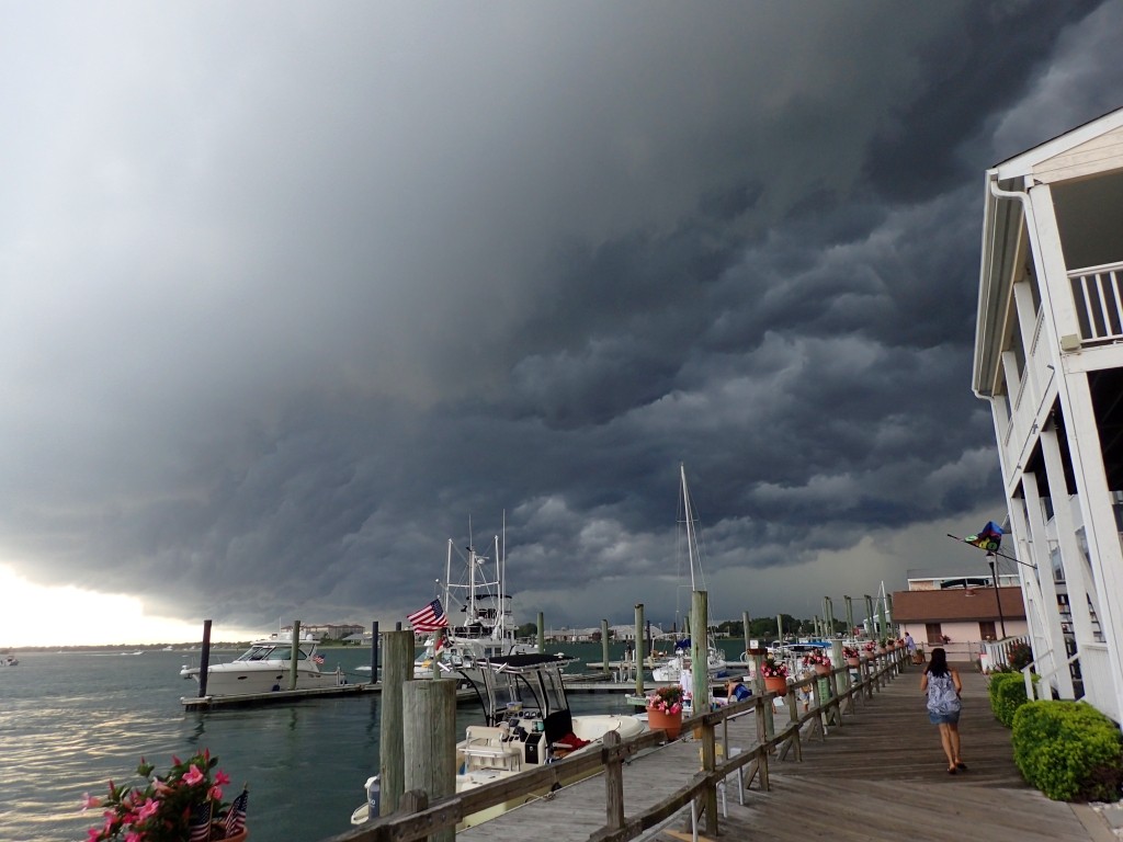 In Beaufort gönnen wir uns dann einen Tag Pause. Beaufort ist eine der ältesten Städte in North Carolina und sehr schön hergerichtet, es gibt nette Cafes und Restaurants. Trotzdem, irgendwann kennen wir die viktorianischen Holzhäuser in den Queen-, Main- oder Front Streets und finden dank ihrer konsequenten Standortpolitik sofort den nächsten Supermarkt der Piggly-Wiggly-(sic!)-Kette (eine Meile die größte Zufahrtsstraße aus dem Ort hinaus…). Auch ein typisch amerikanisches Frühstück inklusive Shrimps and Grits (eine Art Grießbrei mit Meeresfrüchten; schaut so aus wie es klingt und schmeckt auch so) ruft bei uns und unseren Gästen keine Begeisterungsstürme hervor. So holen wir schon am übernächsten Tag früh am Morgen den Anker wieder auf und motoren weiter, an manchen Tagen können wir sogar ein bisschen segeln. Unzählige Creeks, Klapp-, Dreh-, Zug- und Hebebrücken und einige Gewitterschauer später kommen wir an unserem Etappenziel an, die SAILOR MOON ankert in der Chesapeake Bay in Virginia! Entlang dieser riesigen Wasserfläche im Mündungsbereich mehrerer Flüsse hat sich ein dicht besiedeltes Gebiet entwickelt, die sogenannte Hampton Roads. Dazu zählen neben anderen die Städte Norfolk und Portsmouth, die vor allem als Stützpunkt der US-Atlantikflotte bekannt sind; auch die NATO-Flotte ist hier stationiert. Außerdem unterhält die US-Armee hier riesige Werften, in denen selbst die größten Flugzeugträger gebaut und repariert werden können. Norfolk versucht zwar, durch große Investitionen vom Image der rauen Matrosenstadt wegzukomen – unter anderem gibt es einen komplett neuen Marina/Museums/Restaurant-Komplex direkt am Wasser oder eine toll ausgestattete öffentliche Bibliothek – die Präsenz und der Einfluss des Militärs ist jedoch überall spürbar.