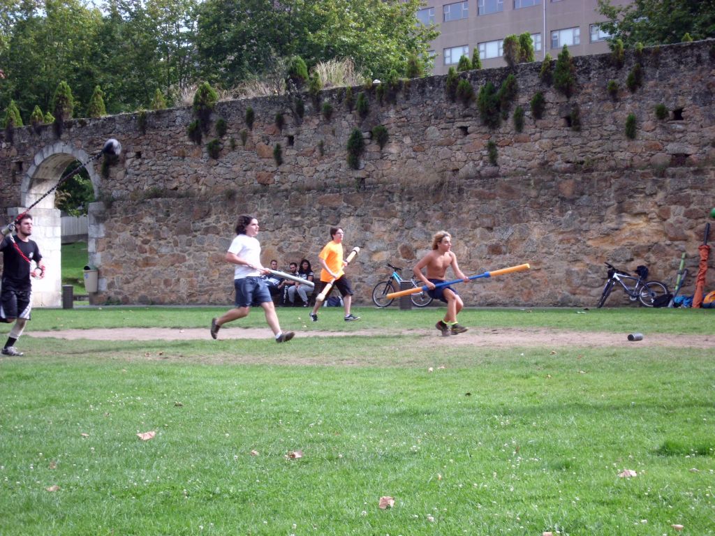 Am Abend bekommen wir dann wieder Besuch, mein Bruder Matti hat im vollsten Vertrauen in unsere seglerischen Fähigkeiten schon kurz vor unserer Abfahrt in Frankreich einen Flug nach Madrid gebucht, das nenn ich mal spontan! Gemeinsam lassen wir uns es am Strand gutgehen, genießen Sangria (danke M & V!) und stoßen am Abend bei Schinkenplatte und Pommes auf die erfolgreiche Biskayaüberquerung an (danke M. Z.!). In einem Park beoabchten wir eine sehr interessante Sportart, die unserer Meinung nach dringend nach Österreich importiert gehört. Heute werde ich mich ein bisschen um den Motor kümmern, der Ölverbrauch war ungewöhnlich hoch in den letzten Tagen, da ist wohl irgendeine Dichtung kaputt oder so. Ansonsten werden wir wohl noch ein bisschen in La Coruña bleiben, die nächsten Ziele müssen erst geplant werden.