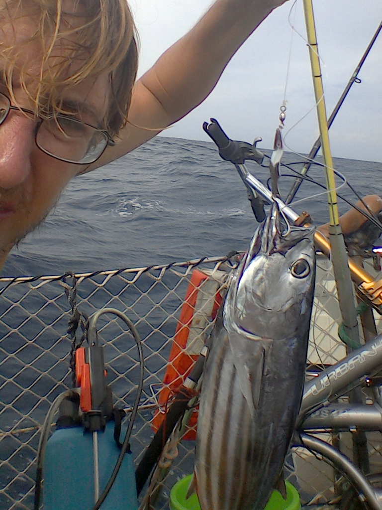Die Überfahrt hierher nach Santa Marta verläuft relativ unspektakulär. Um dem Dauerregen in Aruba zu entfliehen, erklären wir gemeinsam mit unseren mittlerweile eingetroffenen schweizer Freunden Franzi und Pesche von der PANDORA die nächsten paar Tage zum optimalen Wetterfenster und holen den Anker auf. Noch am Abend des ersten Tages überholt uns die viel größere und schnellere PANDORA, aber auch wir sind ganz gut unterwegs. Das Wetter hält, wir fangen und verspeisen einen Thunfisch und einen Mahi Mahi, und Willi akzeptiert problemlos, dass er im Seegang nicht alleine im Boot herumturnen darf. Kurz vor Santa Marta erwischt uns dann doch noch eine Gewitterböe von der Seite und die folgende Patenthalse führt leider zu ein paar Rissen in unserer altersschwachen Genua. Am letzten Tag ist der Wind dann weg und wir motoren zehn Stunden lang bis in die Marina. Für Willi (und auch für uns) dauert es ein bisschen zu lange, aber kurz vor Mitternacht machen wir die SAILOR MOON in der Marina fest und wir legen uns erstmal schlafen.